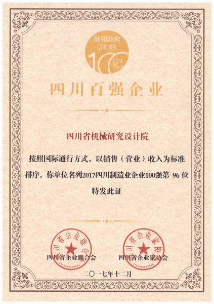 12月8日,四川省企業(yè)聯(lián)合會(huì)、四川省企業(yè)家協(xié)會(huì)主辦的“2017四川企業(yè)100強(qiáng)發(fā)布會(huì)”在成都召開(kāi)。省經(jīng)信委、省國(guó)資委、省企聯(lián)領(lǐng)導(dǎo)及來(lái)自全川入圍100強(qiáng)企業(yè)代表參加會(huì)議。院榮獲四川制造企業(yè)100強(qiáng),四川服務(wù)企業(yè)100強(qiáng),以及首次推出的四川技術(shù)創(chuàng)新發(fā)展能力100強(qiáng)。