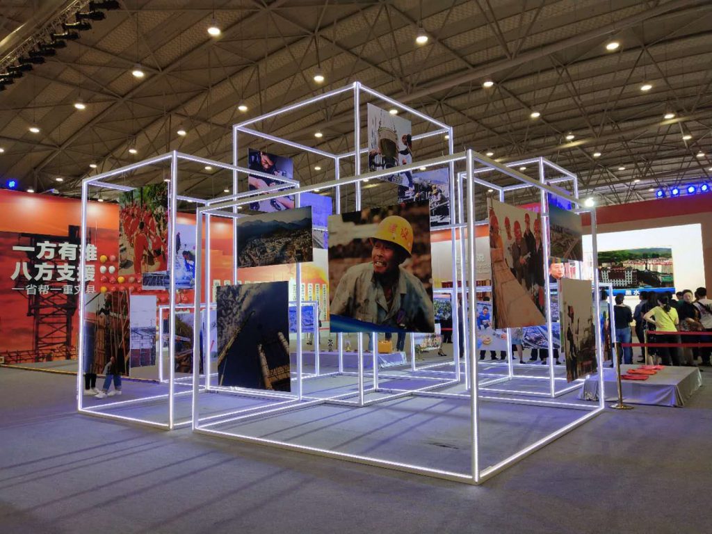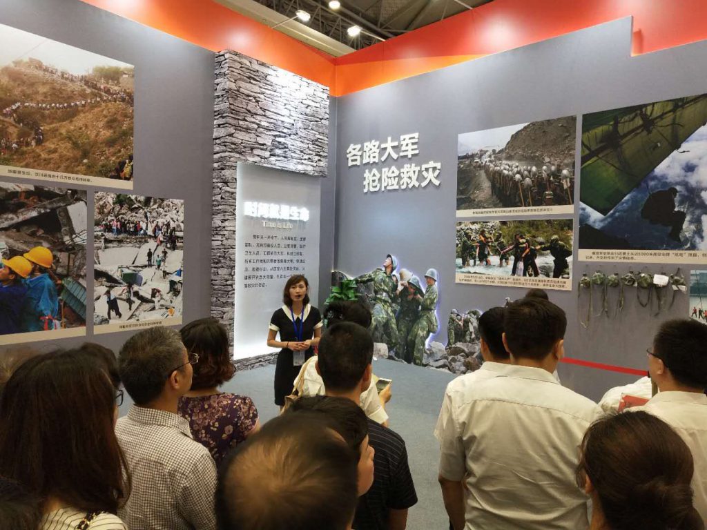 該展覽由四川省委宣傳部和四川省發(fā)展和改革委員會聯(lián)合主辦,以“感恩奮進、砥礪前行”為主題,分為“崛起的力量”“奮斗的足跡”和“美好新家園”三個部分,突出展示了汶川地震災(zāi)區(qū)的十年巨變。