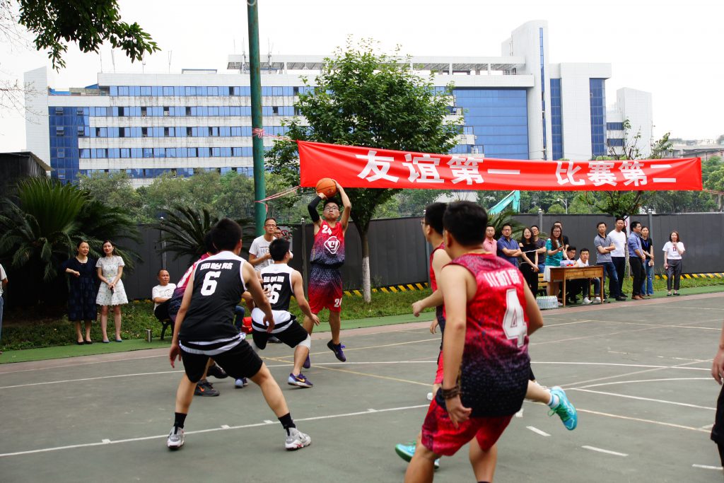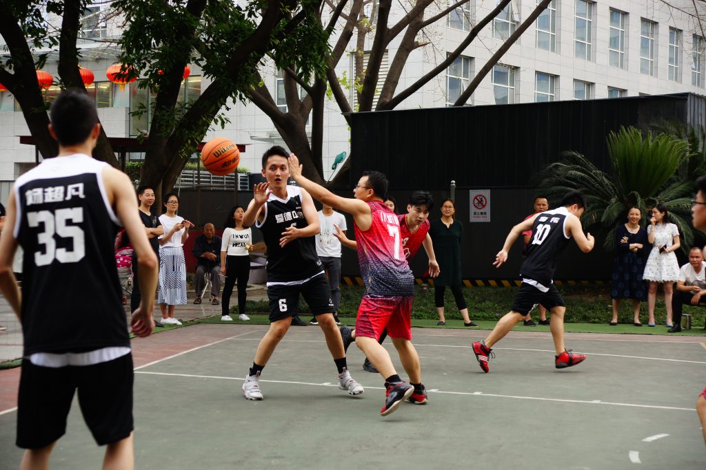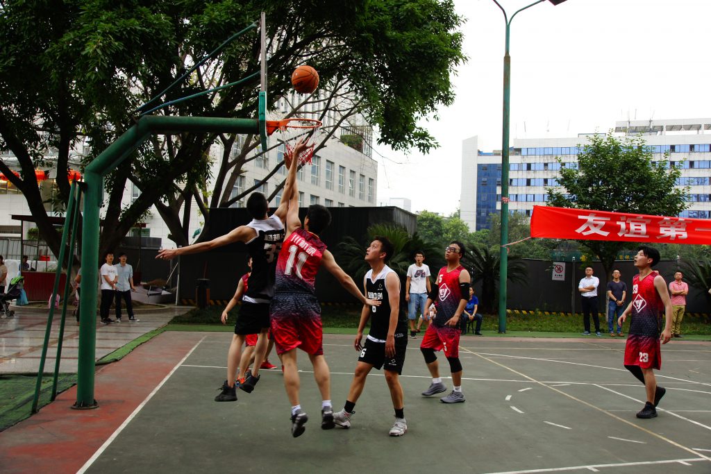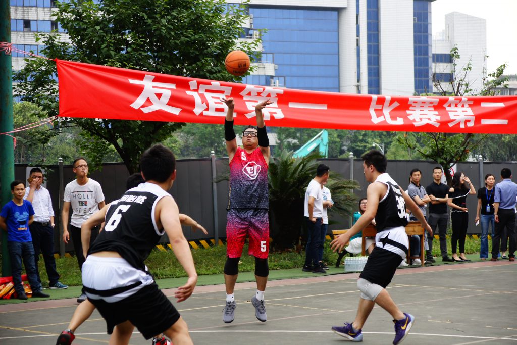 交流參觀結(jié)束后,籃球友誼賽在十一科技籃球場(chǎng)正式開始。雙方隊(duì)員個(gè)個(gè)滿懷激情、斗志昂揚(yáng),啦啦隊(duì)的吶喊聲讓現(xiàn)場(chǎng)氣氛不斷升溫。場(chǎng)上球員將各種籃球技巧展現(xiàn)得淋漓盡致,并始終秉承“友誼第一、比賽第二”的原則,體現(xiàn)了雙方青年良好的綜合素養(yǎng)。雙方的比分一直呈“拉鋸式”上升,最終在雙方球員的頑強(qiáng)拼搏下,比分定格在了23:23。賽后雙方領(lǐng)導(dǎo)對(duì)籃球隊(duì)的表現(xiàn)均表示充分肯定和認(rèn)可,希望青年們能將球場(chǎng)上的熱血、激情和拼搏的精神帶到日常工作中,錘煉自身、不斷成長(zhǎng)進(jìn)步。