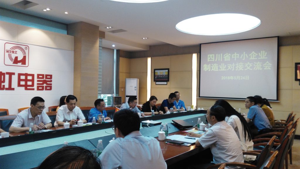 5月24日,四川省中小企業(yè)協(xié)會組織的“四川省中小企業(yè)制造對接交流會”在協(xié)會會長單位—成都彩虹電器(集團)股份有限公司舉行。協(xié)會專家顧問委員會主任、首席高級顧問(原省經信委副主任)張國斌,以及來自遂寧、自貢、阿壩等地的節(jié)能環(huán)保、新材料、新能源行業(yè)制造企業(yè)、專業(yè)服務機構等18家企業(yè)董事長、總經理參會。會議由協(xié)會常務副會長兼秘書長劉光俊主持??萍挤崭圩鳛閰f(xié)會成員單位、專業(yè)服務機構參加了此次會議。